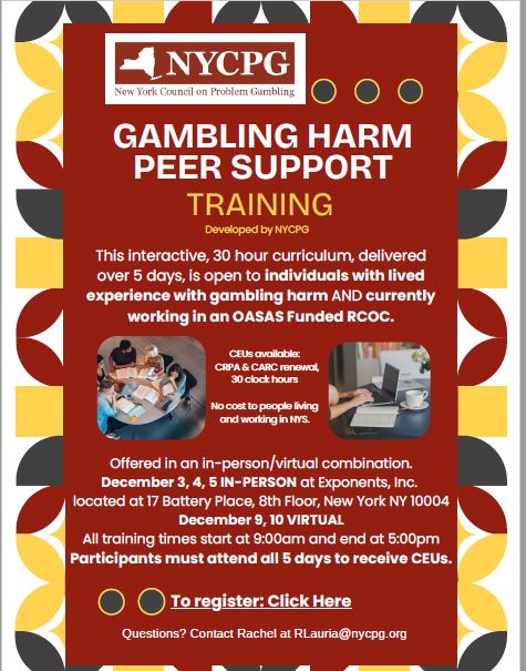 Please Note: This training is specific to individuals with lived experience with gambling harm AND currently working in an OASAS Funded RCOC.