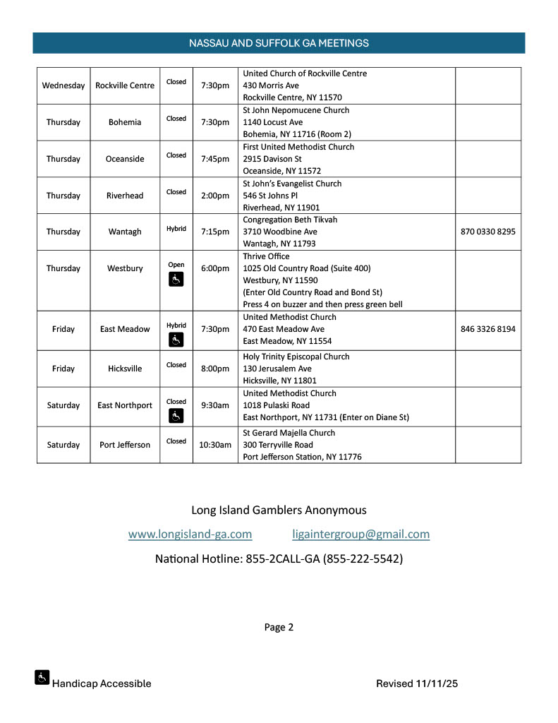 If you would like to connect with the Long Island Problem Gambling Resource Center call: